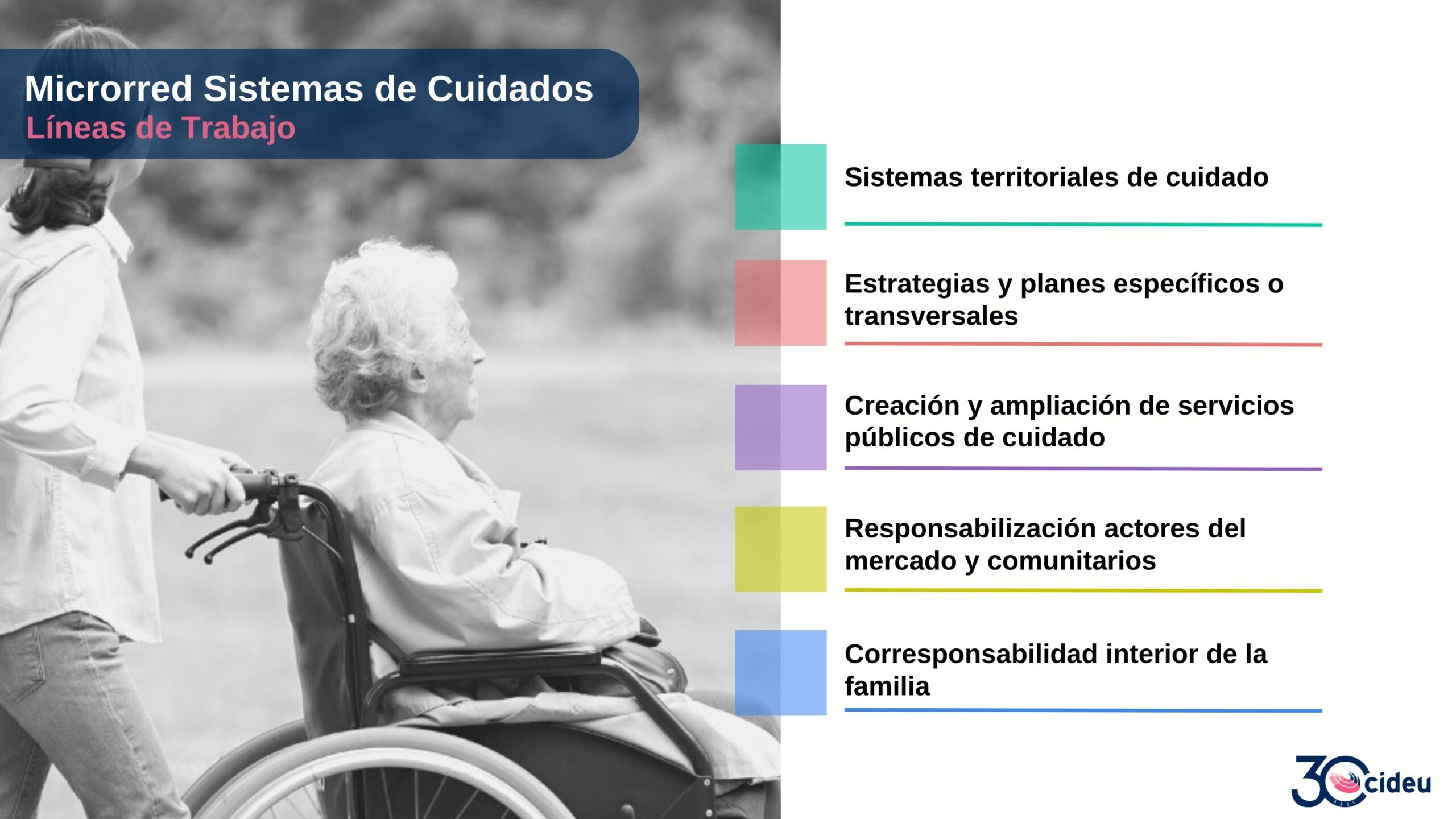 Luego de trabajar la importancia de la transversalidad de género y estrategias para implementarla, y de profundizar cómo esta se vincula con el presupuesto y la fiscalidad, esta nueva Microrred se propone hacer foco sobre los Sistemas de Cuidados y cómo trabajando en los sistemas desde una perspectiva estratégica, podemos incidir en la calidad de vida, la economía, la salud y otros aspectos de la vida de las personas.