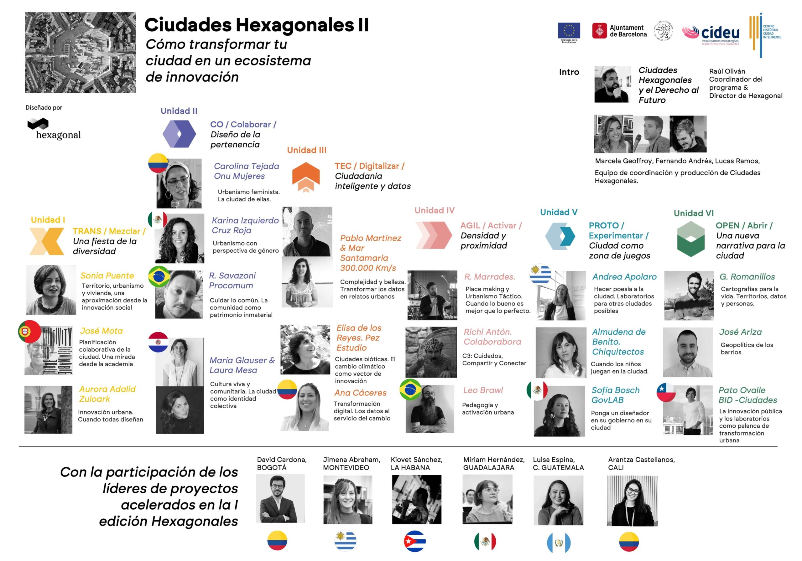 Dos ediciones del curso “Ciudades hexagonales: Cómo transformar tu ciudad en un ecosistema de innovación pública y urbana”, más de 66 participantes.